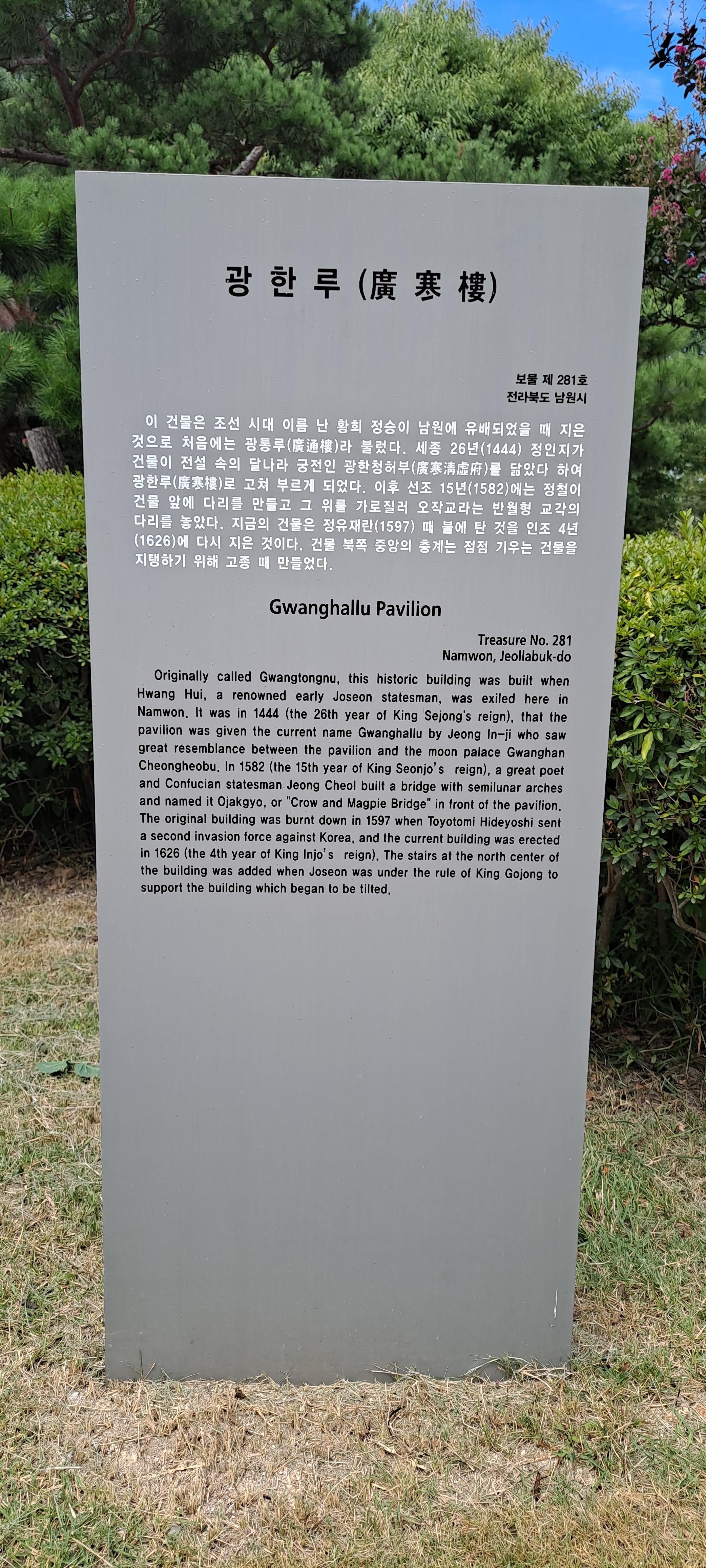 광한루원에 들어서니 아기자기한 모습과 저 만치 광한루가 보인다ㆍ 오작교를 건너 가서 한바퀴 쭉 돌아보니 완월정도 있고 월매집도 있고 춘향관도 있고 두루 두루 관람을 한다ㆍ코로나로 인한 답답한 휴일이라서 그런지 많은 인파들로 붐볐다ㆍ