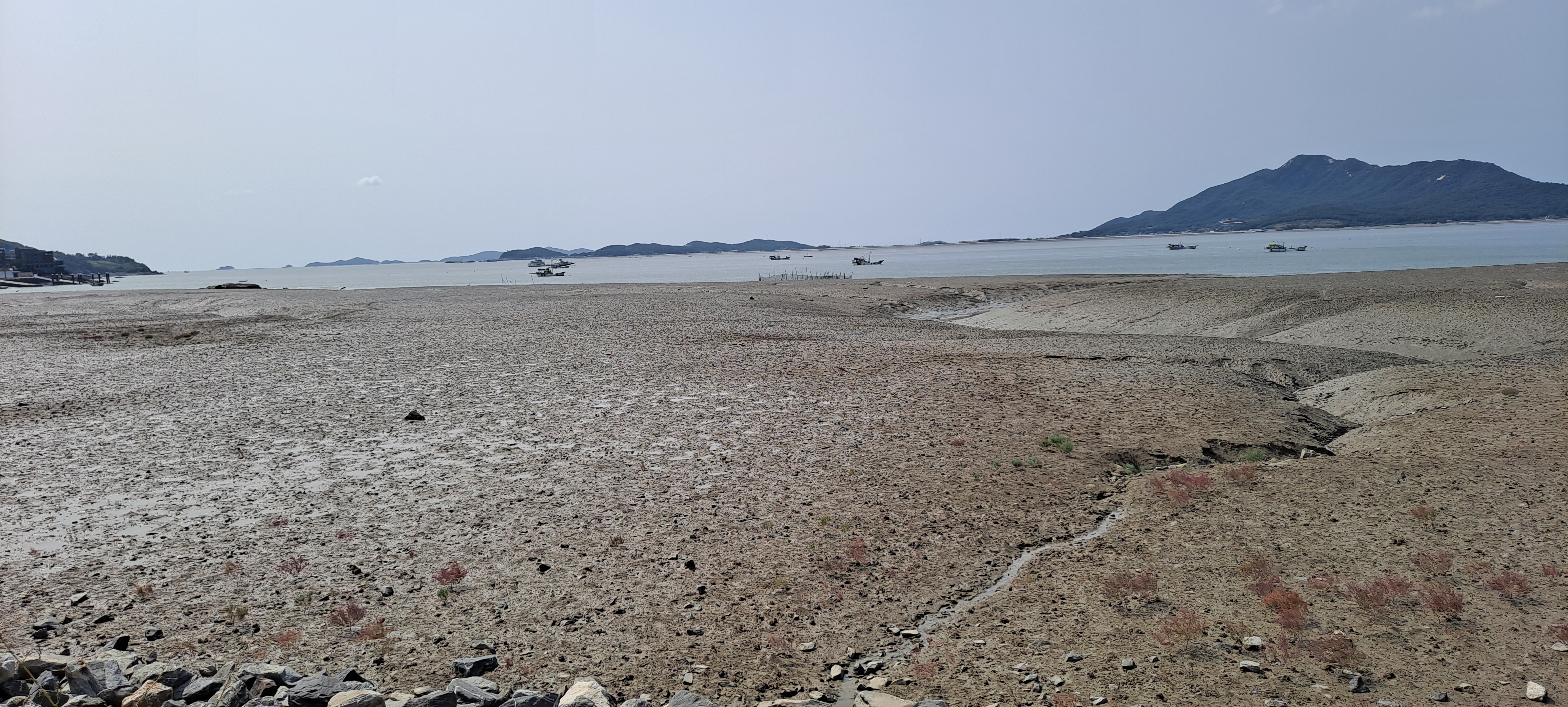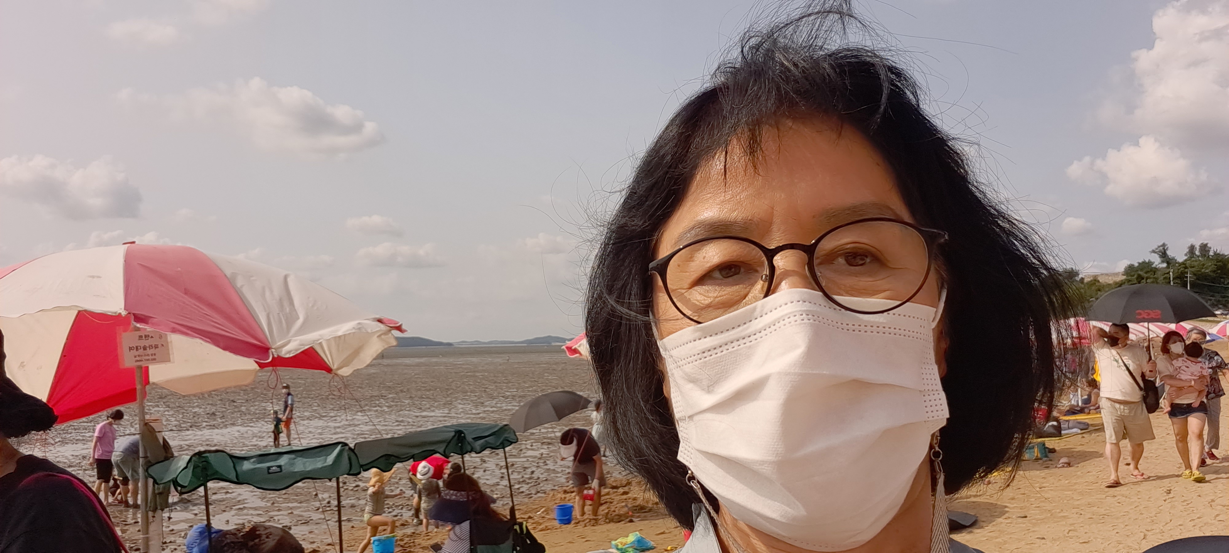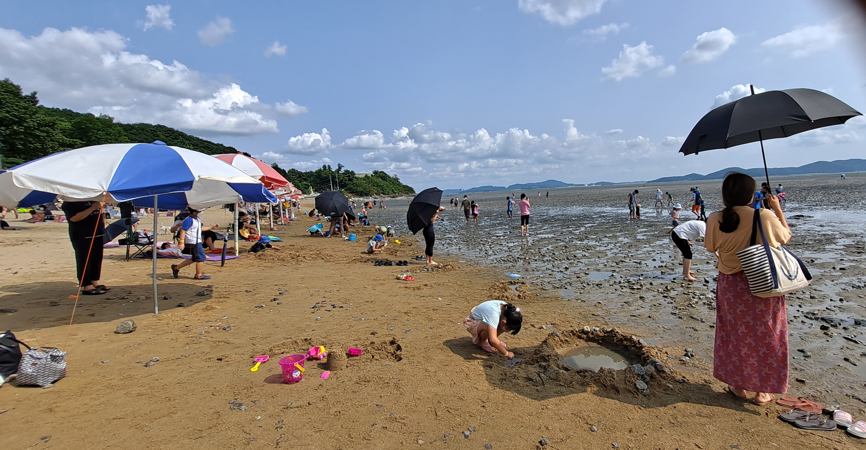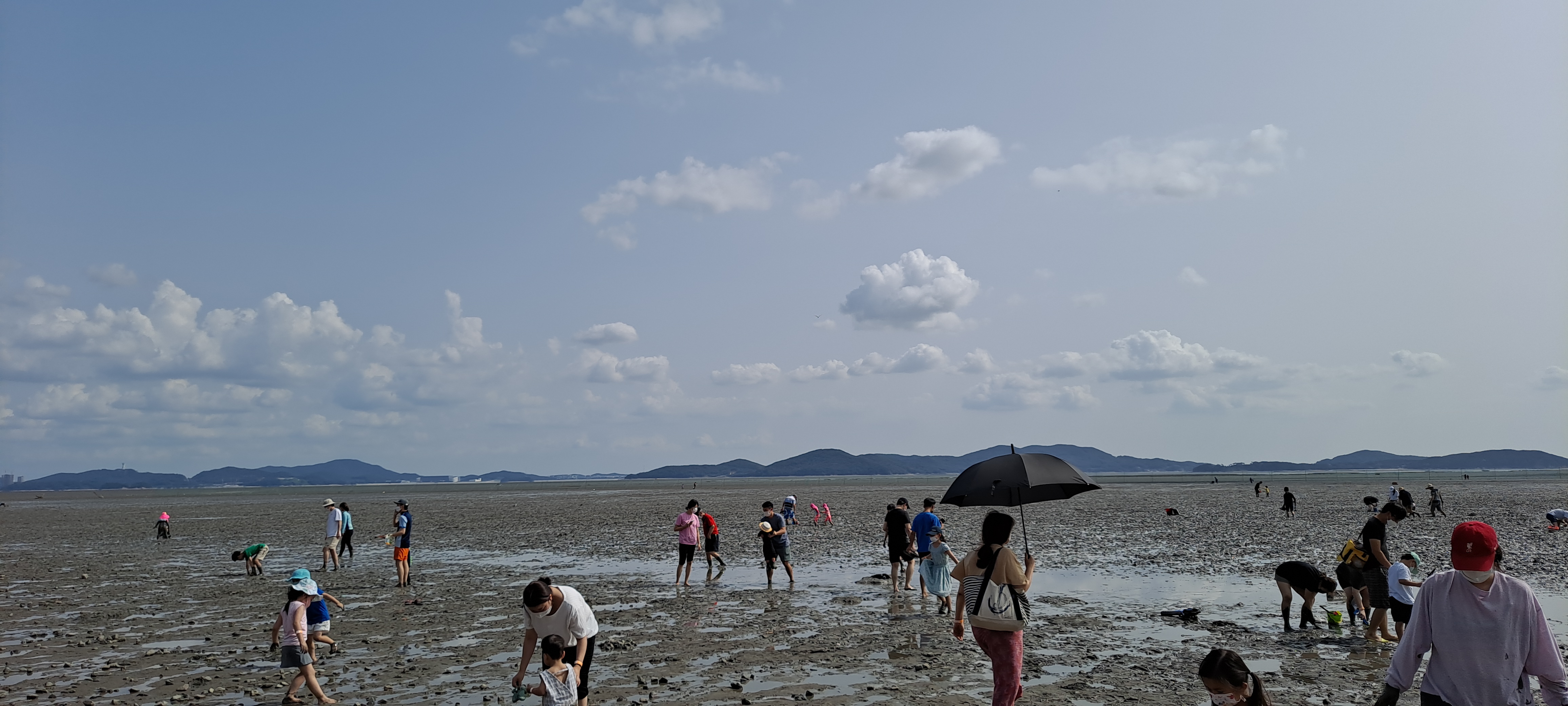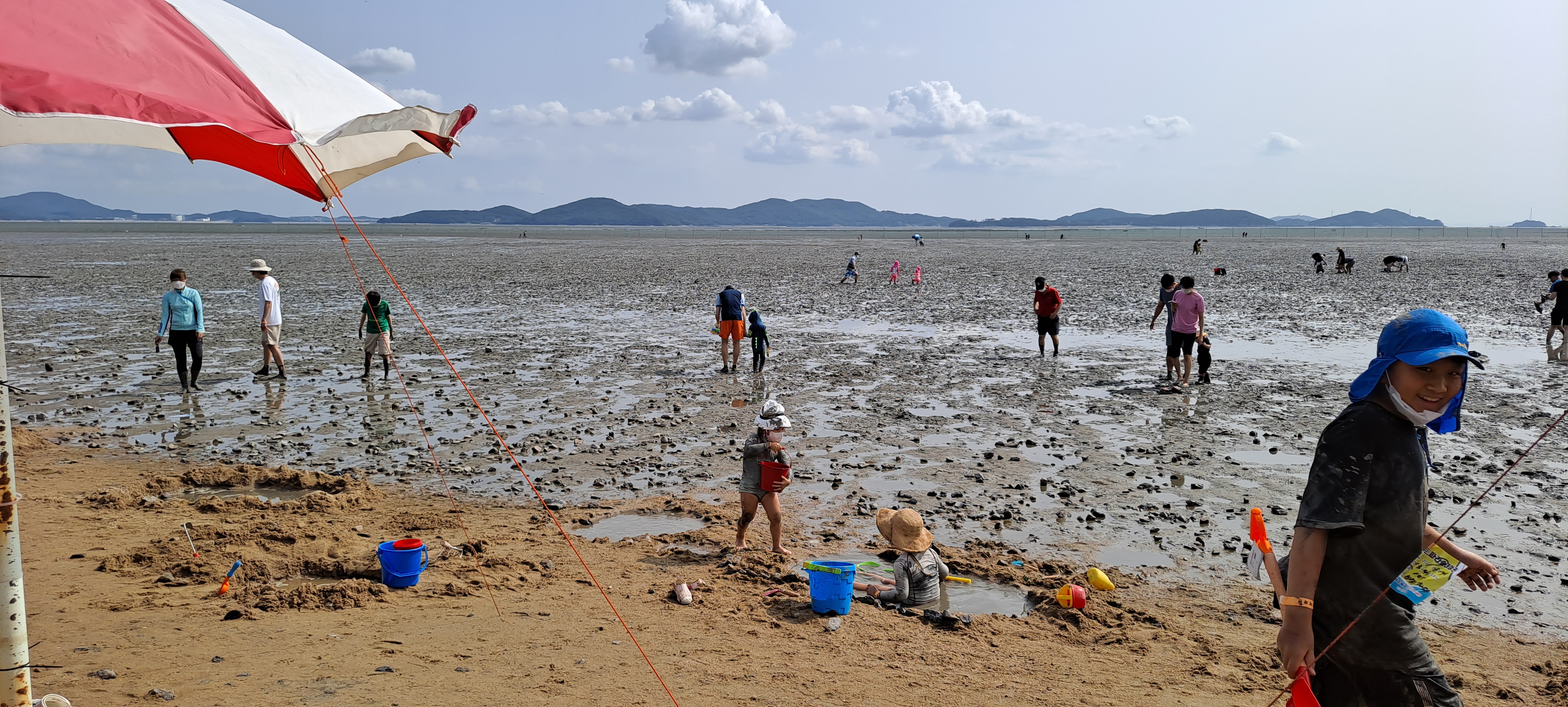 해수욕장엔 물은 없고 갯벌체험을 하려고